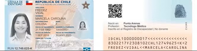 Bajo estas líneas observe la imagen de una Cédula de Identidad chilena. La Cédula de Identidad chilena es el documento soporte físico del RUN, ¿Que es el RUN de una persona?… muy sencillo en la esquina inferior izquierda de la cédula se imprime el RUN. Como verá, en la cédula de identidad chilenase incluye su nombre y 2 apellidos, nacionalidad, sexo, su fecha de nacimiento y también se imprime el tipo de visa de residencia en caso de ser extranjero. Usted deberá llevar su cédula de identidad siempre encima pues es el documento que le permite identificarse ante cualquier autoridad chilena que se lo demande.